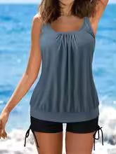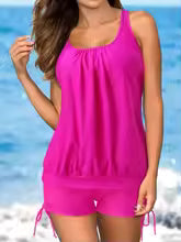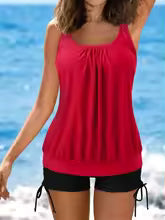 - Design: Tankinitopp med rynkad hals och justerbara shorts