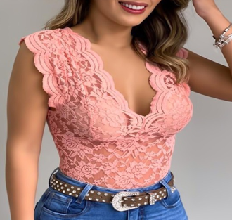Dam Body – Spets – Djup V-ringning – Elegant Figurnära Design