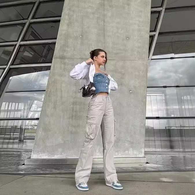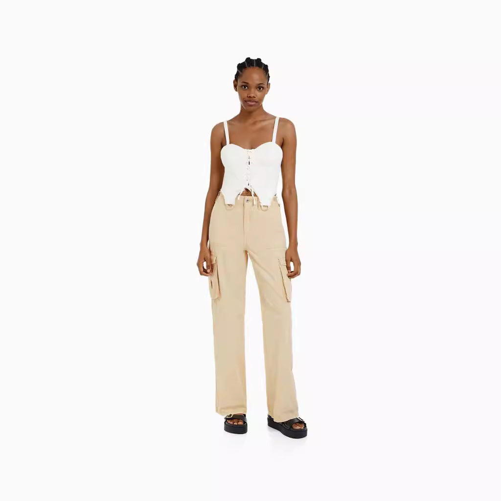 Dame Cargo Byxa - Avslappnad Passform - Breda Ben - Funktionella Fickor. Upptäck dessa stiliga och bekväma cargobyxor! Med avslappnad passform, breda ben och praktiska fickor, är de perfekta för vardagsbruk och äventyr. Ett måste i varje garderob för en avslappnad och trendig look.