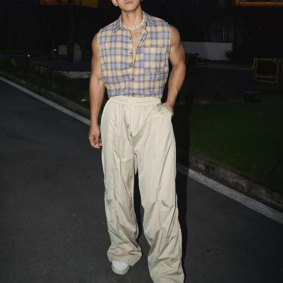 Ärmlös herrskjorta – Lös passform – Rutmönster – Andningsbar bomull – Casual